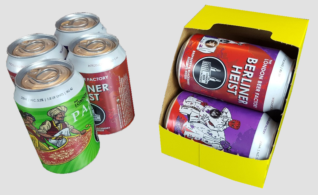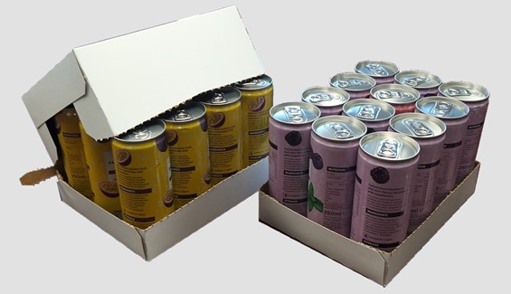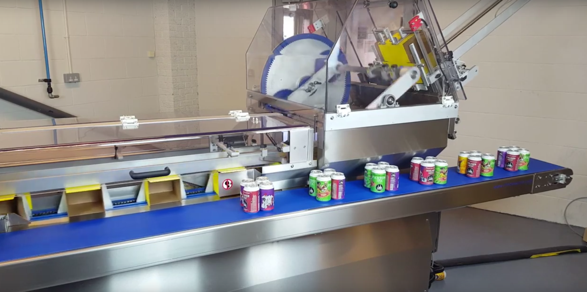 Mit den Kartoniermaschinen können auch Getränkedosen in unterschiedlicher Zahl verpackt werden.
